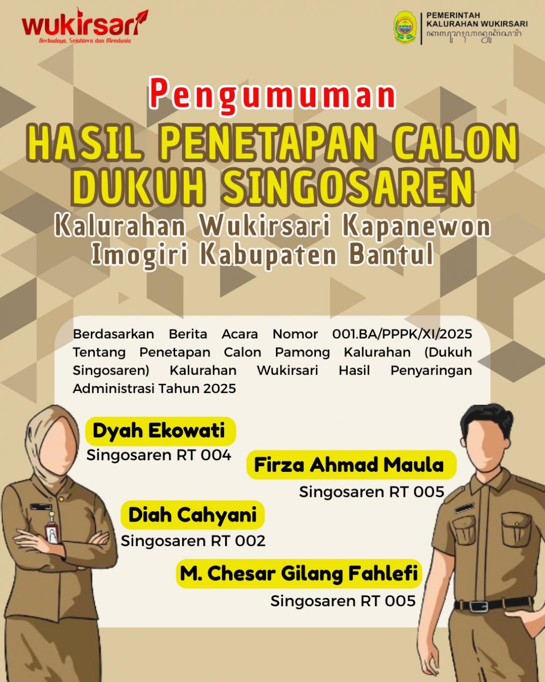 #Wukirsari #Singosaren #PengumumanKalurahan #PamongKalurahan #SeleksiDukuh2025