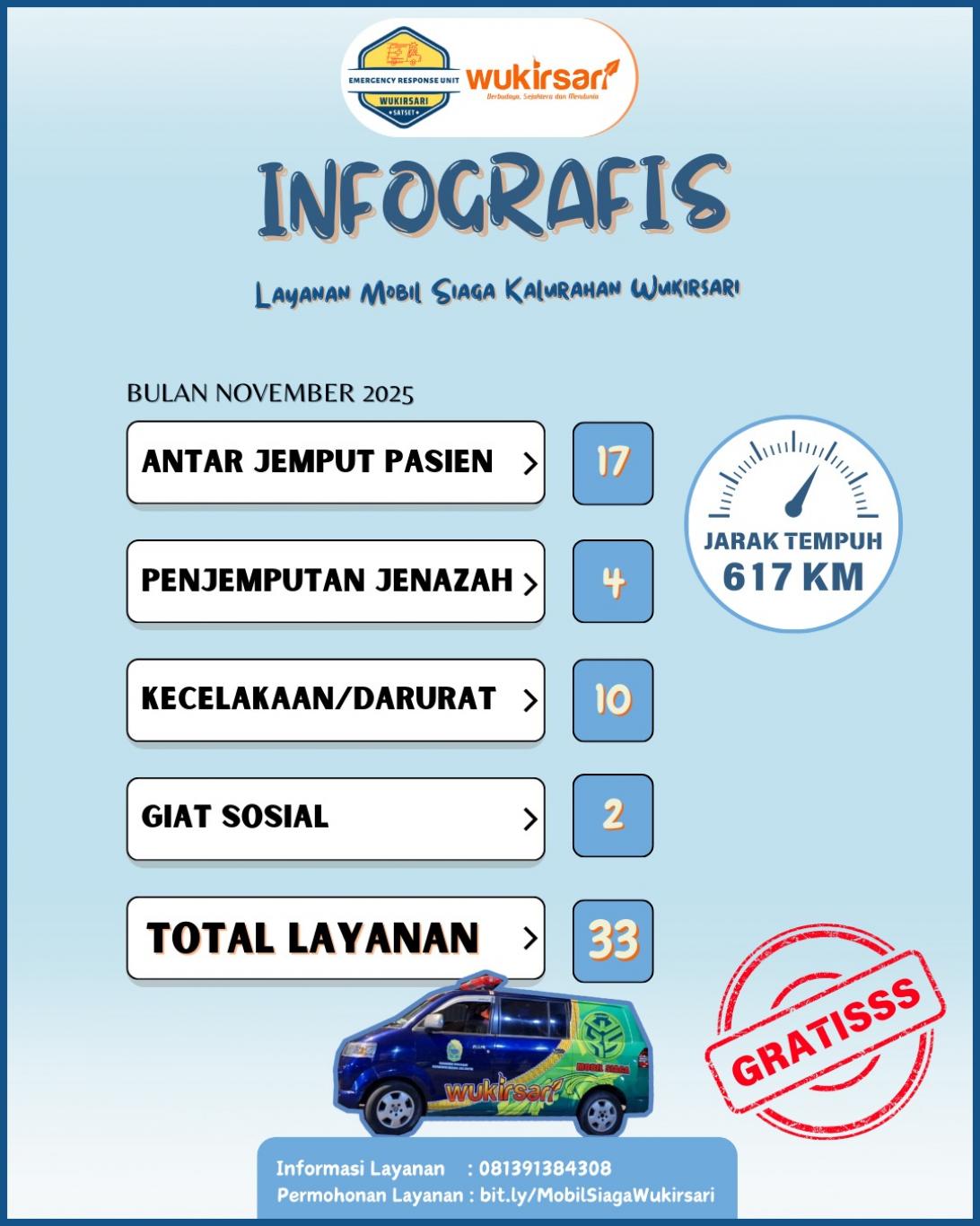 Infografis layanan mobil siaga Kalurahan Wukirsari Bulan November 2025